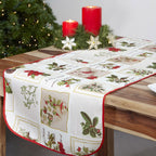 Χριστουγεννιάτικη τραβέρσα με collage από διάφορα super σχέδια σε λευκό φόντο. Η τέλεια λύση για τις εποχιακές ανάγκες διακόσμησης και εξαιρετική για καθημερινή χρήση κατά την περίοδο των γιορτών. Μπορεί να τοποθετηθεί στο κέντρο μιας μεγαλύτερης τραπεζαρίας, πάνω από ένα μονόχρωμο τραπεζομάντηλο, και να δώσει μία γιορτινή οπτική στο τραπέζι. Τοποθετήστε στο κέντρο της ένα διακοσμητικό ή ένα κηροπήγιο με κεριά για μία ολοκληρωμένη διακόσμηση.